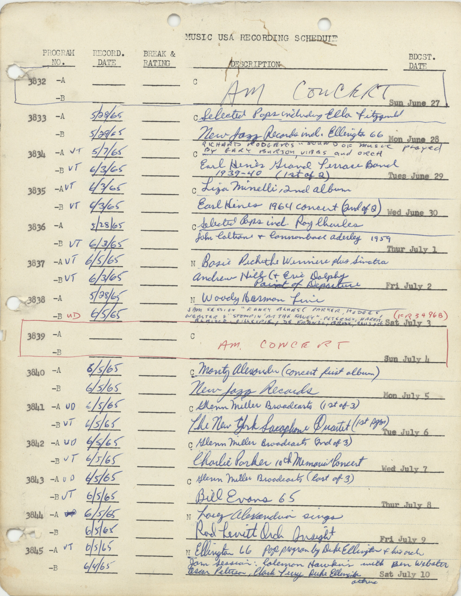 Music USA Recording Schedule, 19651977 UNT Digital Library